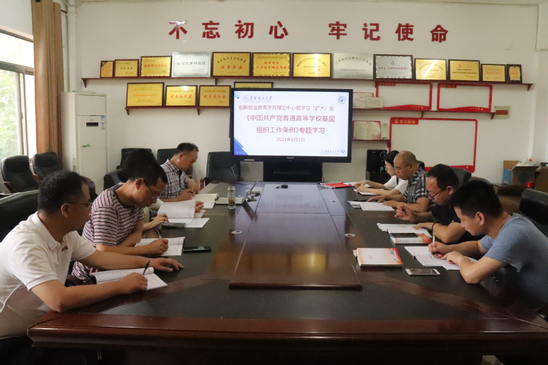6月1日下午,创新创业教育学院在双创楼308会议室召开党总支中心组第七次(扩大)学习会,专题学习《中国共产党普通高等学校基层组织工作条例》,学院党总支中心组成员、学院全体党员参加会议,会议由学院党总支书记王合义主持。
