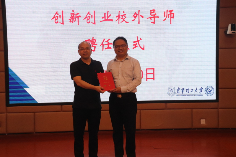活动开始前,王学刚院长向肖平颁发聘书,聘请肖平担任我校创新创业校外导师。