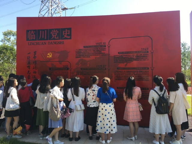 为加强英语专业学生党员党史教育,丰富英语专业学生党支部党日活动形式和内容,把党史学习教育与思政课程“一线课堂”教育实践活动相结合,2021年6月6日上午,师范学院英语专业学生党支部在支部书记汤昱老师的带领下共39位党员前往临川党建文化园,进行了党史学习实践活动。