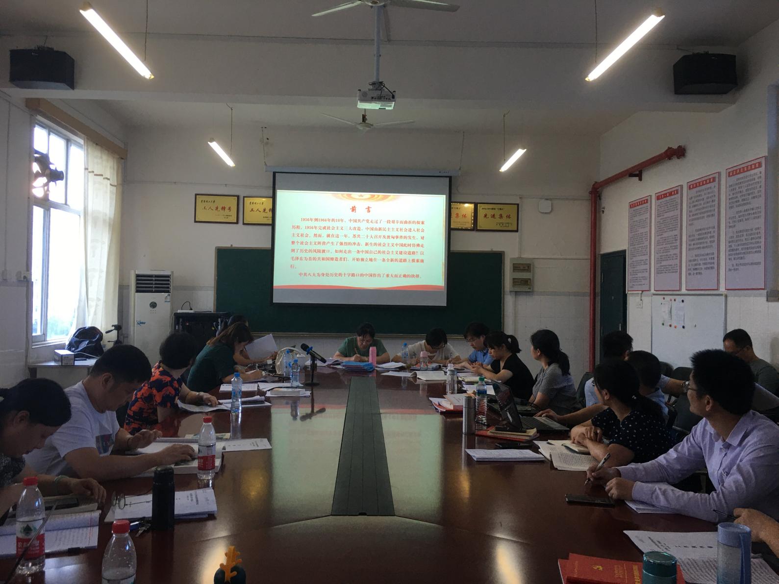 大家围绕中共八大的内容进行了讨论交流,大家纷纷表示,要深入研究阐释习近平新时代中国特色社会主义思想,并围绕如何将党史教育学习融入思想政治理论课教学进行了心得体会交流。(图/文/段艳丰)