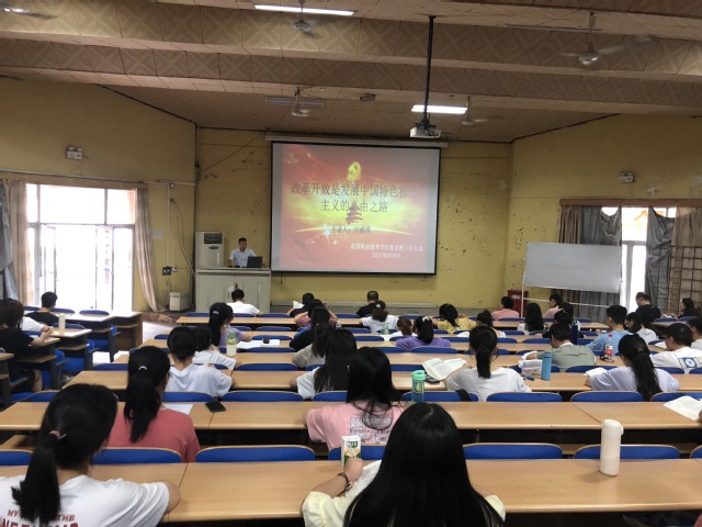 万盛清老师从改革开放的定义、背景、理论依据和坚定不移地推进改革开放四个方面进行了详细的讲解,同时例举了改革开放前和改革开放后的大量实例图文并茂地进行对比讲解,使在座的师生们深刻认识到改革开放给中国经济带来的巨大变化,为全国人民创造了美好的幸福生活。最后,万老师用习近平总书记的两句话:“改革开放只有进行时,没有完成时”和“开放的大门只会越开越大”结束了党课讲座。