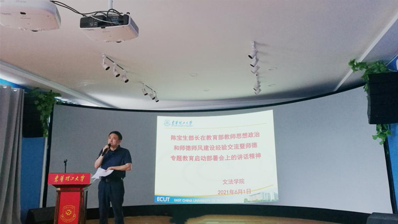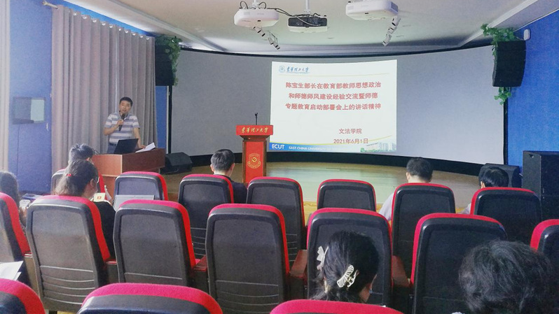 2021年6月8日下午2点30分,文法学院在文法楼406会议室召开“教师思想政治和师德师风建设暨师德专题教育”部署会议,会议由党委书记朱青主持,党委领导班子成员出席,科级干部、支部书记和全院教师参加会议。