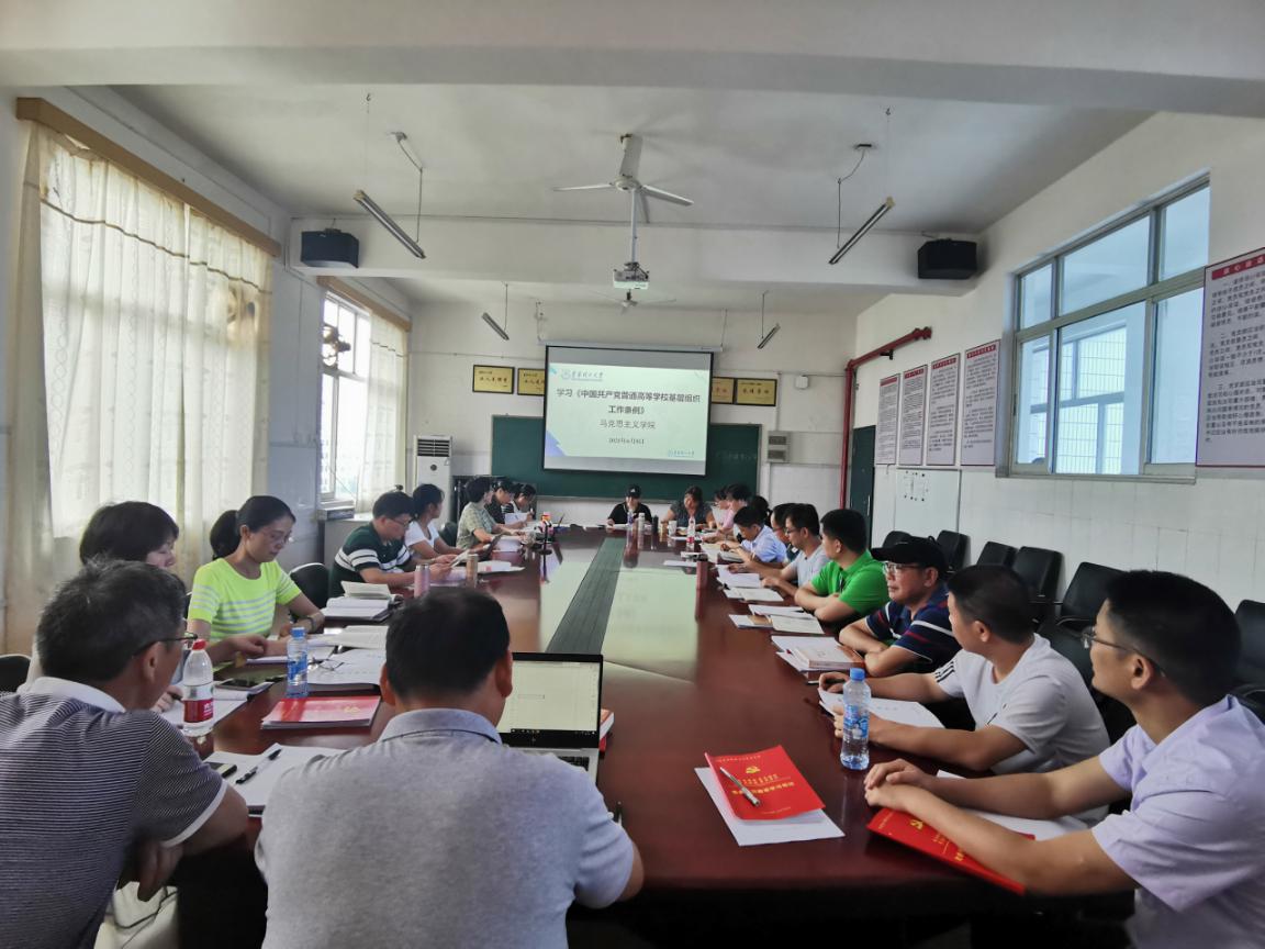 为贯彻执行省委组织部、省委教育工委《关于学习贯彻<中国共产党普通高等学校基层组织工作条例>的通知精神》,马克思主义学院党总支于2021年6月15日在测绘楼505室开展集中学习研讨。