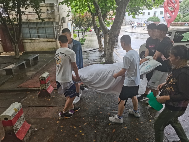 6月2号下午,应某离退休职工家属的请求,小分队成员们在学府校区教职工住宅小区内热心帮抬生病退休职工上楼回家。
