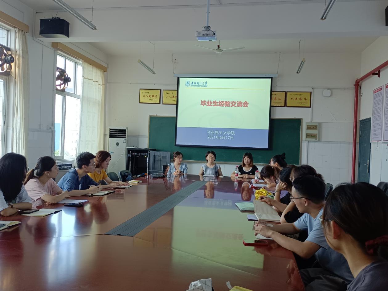 6月17日上午,马克思主义学院在测绘楼505召开毕业生经验交流会。此次会议邀请了三位优秀毕业生,她们分享了考博和求职过程中的心得体会,会议由付海莲老师主持。