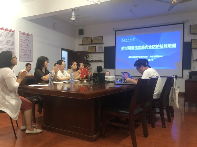 基于高校网络诈骗、黑客攻击等网络安全事件易发多发,为了提升广大师生的网络安全防护意识和能力, 2021年6月18日校网络与信息中心副主任李卫东应邀为我院师生举办了一场网络安全技能防护培训会,培训会以实地和视频连线的方式在枫林校区艺术楼509会议室和抚州校区行政楼514会议室同步进行。学院行政坐班人员、班子成员、系部代表及各年级学生代表参加了培训。