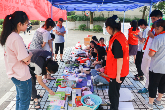 通过前期线上线下宣传,毕业生们主动将闲置的书籍资料等物品进行捐赠。学院青年志愿者协会的志愿者们通过集中清理、归整,让旧物换上了“新颜”,并将前期征集到的两百余件旧物在学府校区学生食堂门口集中售卖。