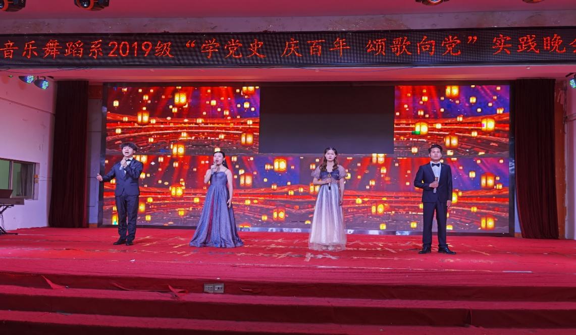 为庆祝党的百年华诞,传承和弘扬红色精神,展示教学成果与学生的专业风采,艺术学院音乐与舞蹈系于6月24日下午,在抚州校区大学生活动中心举办了“学党史 颂百年”主题艺术实践晚会。