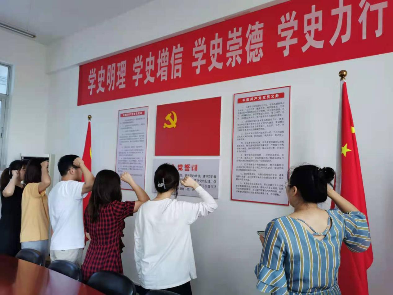 6月28号上午,马克思主义学院研究生党支部在测绘楼505举行了庄严而又隆重的入党宣誓活动,五位预备党员参加了此次活动,活动由党支部书记李金花老师主持。