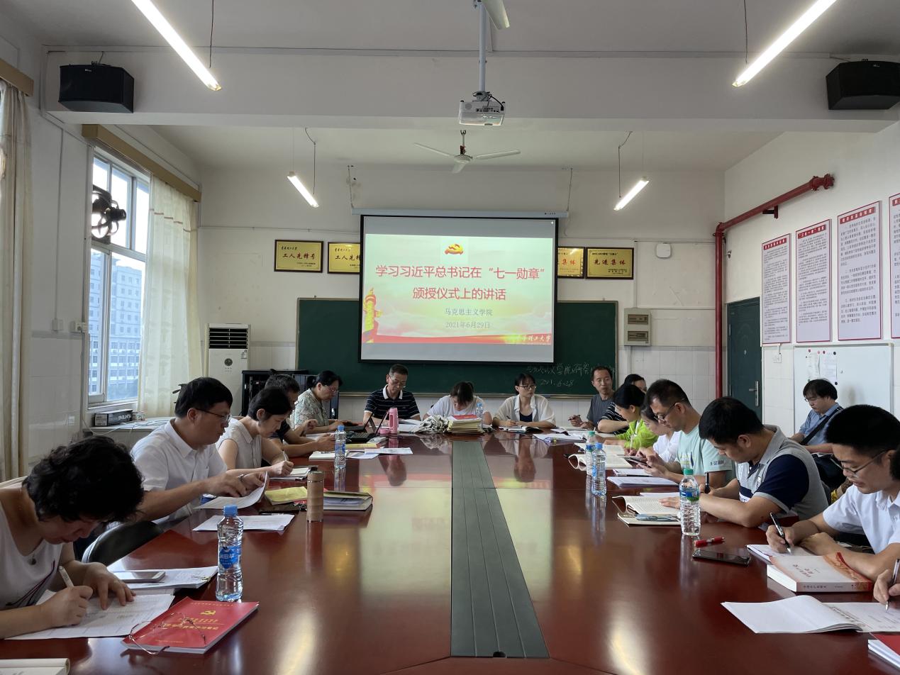 6月29日下午,马克思主义学院在测绘楼505室组织学习中共中央总书记、国家主席、中央军委主席习近平在庆祝中国共产党成立100周年“七一勋章”颁授仪式的重要讲话,学院全体教师参加会议,会议由学院党总支书记华启和主持。