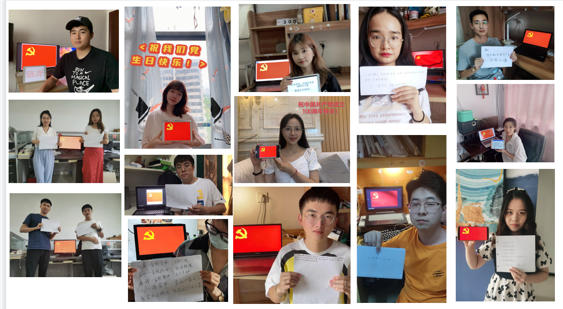 2021年7月1日,是中国共产党成立100周年纪念日,测绘工程学院第一研究生党支部的青年党员及积极份子们以手写祝福语的形式,表达内心的喜悦和激动之情,传递对党的生日祝福,为党的100华诞献上祝福活动。
