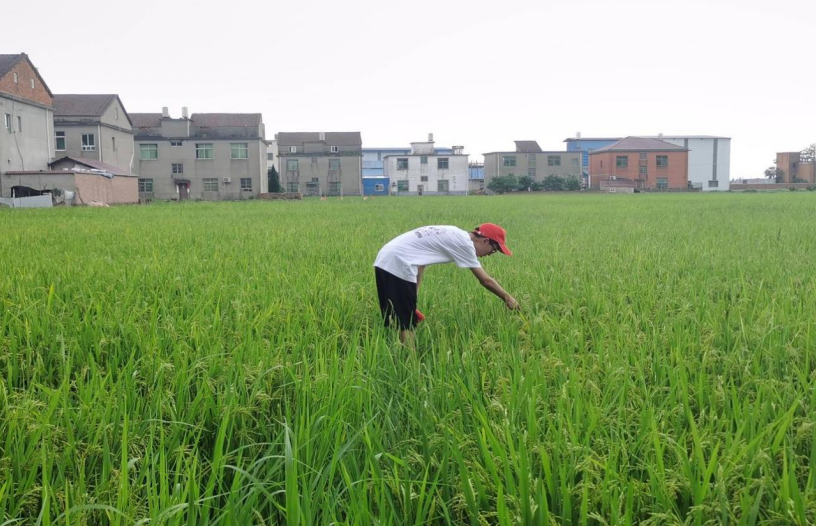 夏季正值稻谷生长期,满眼绿色稻田,伴着清风缓缓而动,迎面送来阵阵清香。直播带货组组长周靖伟带领着小组成员下到了当地农户的农田当中。为切实了解当地稻谷等农作物生长情况,周靖伟挽起裤腿,踩进了泥巴地里,了解和观察各类农作物,为之后的直播带货做好充分的准备。
