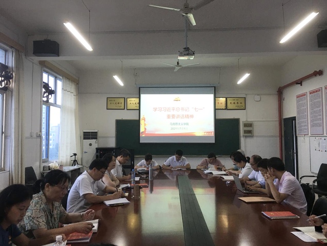 集中收看庆祝大会后,学院组织全体教师围绕习近平总书记在庆祝中国共产党成立100周年大会上的讲话进行交流。