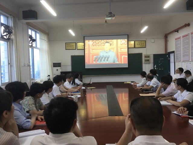 7月1日上午8:00,马克思主义学院组织全体教师在测绘楼505集中收看庆祝中国共产党成立100周年大会。