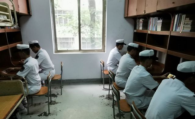 学院其它定向培养士官在宿舍同步收看了庆典实况直播。(图/张驰 靳若男 文/曹燕)