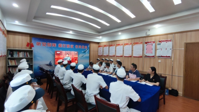 19中队定向培养士官张驰内心感慨,“观建党百年之盛典,感慨先辈革命之不易,惊叹华夏发展之迅捷,幸运生于今日安定之盛世。我将牢记报考海军士官生的初心,增强志气、骨气、底气,不负党和人民之期望。”