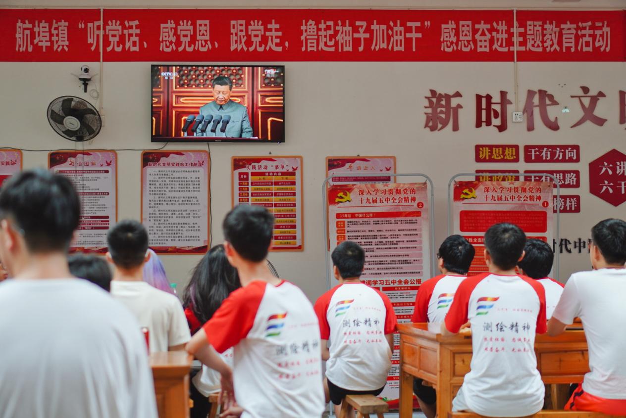 2021年7月1日8时,庆祝中国共产党成立100周年大会在北京天安门广场隆重举行,习近平总书记发表重要讲话。测绘工程学院“三下乡”服务队迅速组织志愿者们观看直播。