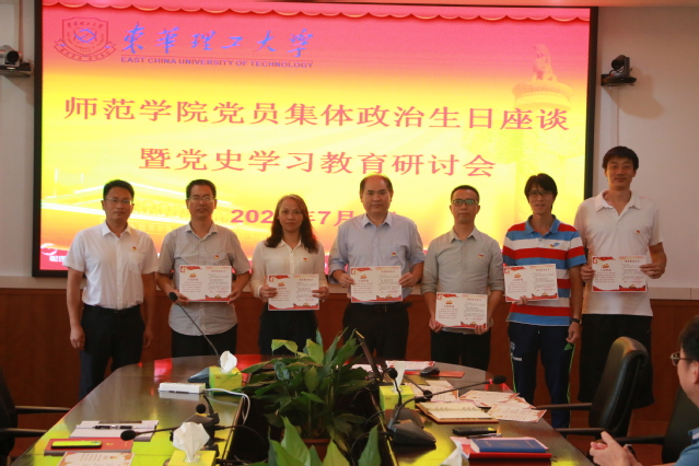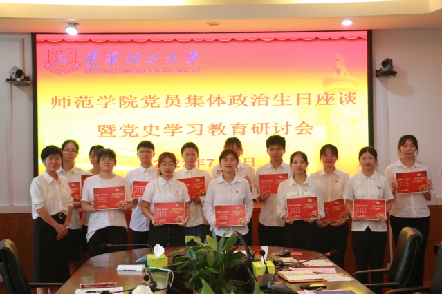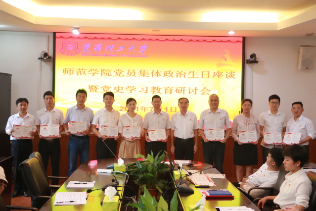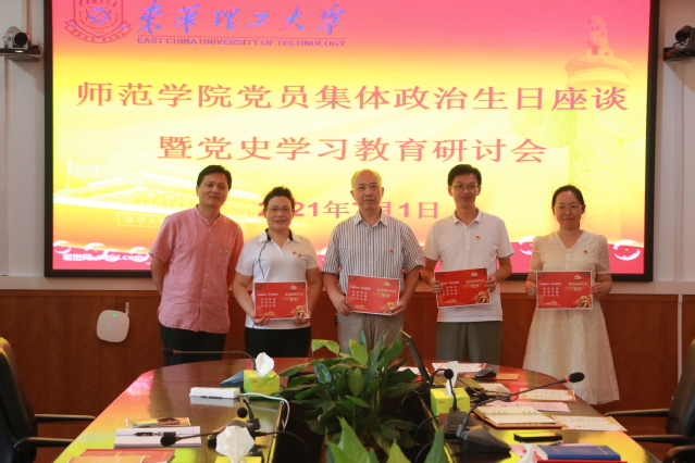 2021年7月1日,东华理工大学抚州师范学院于行政楼三楼会议室召开了党员集体政治生日座谈暨党史学习教育研讨会,学院党政领导班子、教职工党员及部分学生党员参加会议。会议由师范学院党委副书记江汶俊主持。