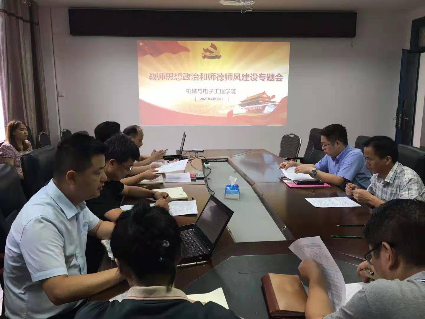 6月30日下午,机电学院在320会议室召开了师德师风建设专题工作会,学院党委书记徐鹏程、院长王可,以及学院领导班子成员、党委委员、党支部书记和各系室负责人参加会议。会议由王可主持。
