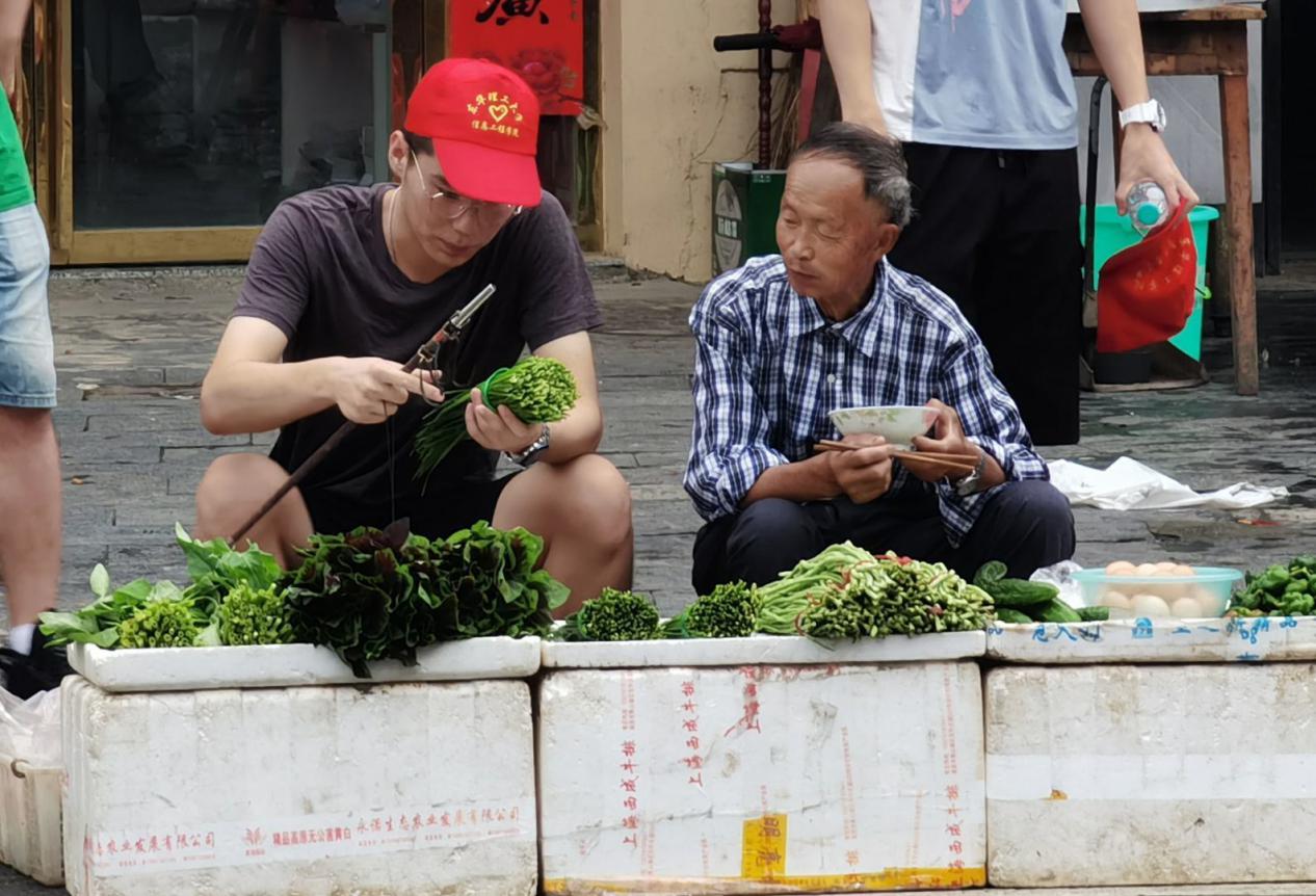 我院时润豪、李文江同学上门拜访并看望村民王爷爷,王爷爷的子女常年在外务工,平日里一个人去市场卖农产品补贴家用。考虑到王爷爷搬运农产品困难,志愿者们主动提出帮助王爷爷卖农产品。志愿者们发现王爷爷依然用传统的杆秤和收现金的方法交易,志愿者们耐心地教王爷爷手机扫码支付和电子称的使用方法。王爷爷听完志愿者们耐心的讲解后,感叹时代变化之快,并由衷地对志愿者表示感谢,他说:“现在国家政策好了,生活水平有了很大提高,生活还是很有盼头的。”