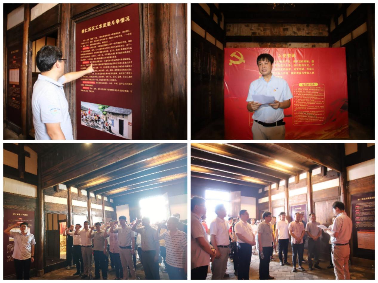 在古塘村村干部的带领下,测绘工程学院土地资源管理系教工党支部党员参观了崇仁县第一党支部旧址。正值建党一百周年伟大时刻,在鲜红的党旗面前,党支部书记危小建同志带领现场党员,坚定举起右拳,重温入党誓词,以铮铮的誓言向党宣誓,忠诚于党、担当作为。测绘工程学院党委书记吕开云同志在党旗面前讲党课,他强调要以实际行动恪守对党的承诺,持之以恒发扬党的光荣传统和优良作风,进一步坚定理想信念,自觉向革命先烈看齐,坚定理想信念,始终同人民想在一起、干在一起,风雨同舟、同甘共苦,继续为实现人民对美好生活的向往不懈努力,努力为党和人民争取更大光荣。