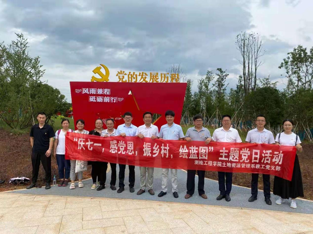 测绘工程学院土地资源管理系教工党支部党员还驱车前往抚州市临川区参观党建主题公园,通过观赏党的发展历程红色长廊,重温了共产党的光辉历史。