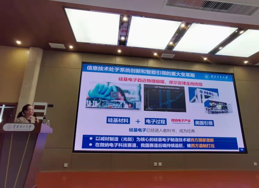 接下来,宋青向我院学子全面介绍研究院的办学历史、学科优势及学科前景,同时展示了柔性电子研究院的学习和生活环境等,在报告的最后部分,她向同学们展示了西安古城的人文和饮食习惯和魅力,深深吸引了在场的每一个同学。