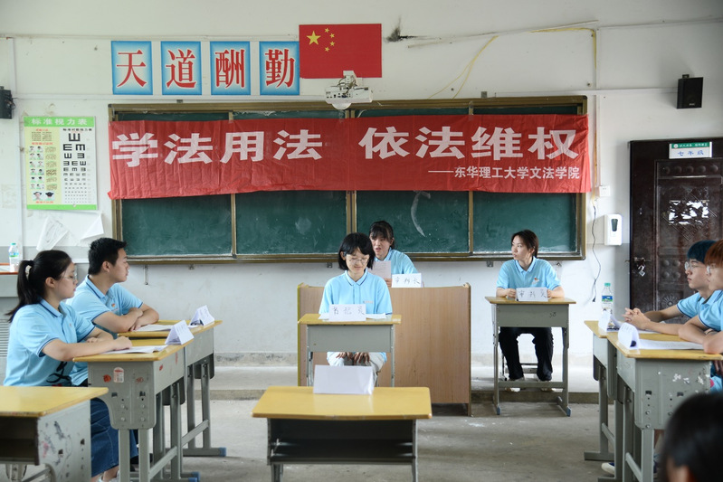 为深入贯彻落实习近平总书记在庆祝中国共产党成立100周年大会重要讲话精神,文法学院组织“三下乡”社会实践团队积极投身到服务社会、服务人民活动中去。7月2日上午9点,我校文法学院“三下乡”暑期实践队的普法组在抚州市资溪县乌石镇小学为学生们带来了一场别开生面的“庭审”现场。