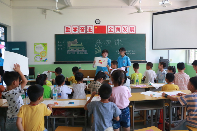 为弘扬爱国主义精神,加强党史学习教育,师范学院暑期“三下乡”社会实践服务队开展了“绘画青春,童心向党”绘画支教活动,通过绘画让孩子们发挥想象、学习知识,体会快乐。