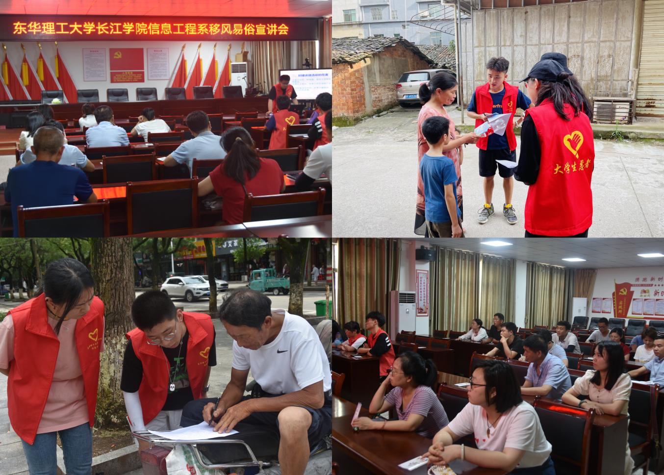 为深入学习贯彻习近平新时代中国特色社会主义思想,要大力弘扬时代新风,加强思想道德建设,要弘扬新风正气,推进移风易俗,培育文明乡风、良好家风、淳朴民风,焕发乡村文明新气象,“信工爱心小分队”的志愿者们在红星社区范围内对乡亲们针对移风易俗方面的问题进行了问卷调查,发放宣传手册,并开展了“移风易俗”知识集中宣讲。