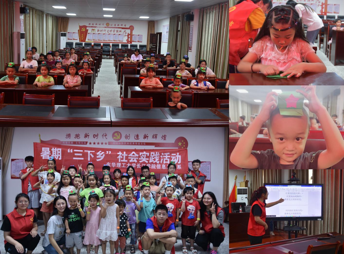 为响应国家对留守儿童的关注,表达大学生渴望回馈社会的心情以及对祖国下一代健康成长的期望,“信工爱心小分队”志愿者们对社区的留守儿童进行了音乐课和手工课的支教活动。分别开展了音乐小课堂、手工小课堂,课堂上教孩子们唱“红星闪闪”等儿歌,教孩子们折红军帽等手工。