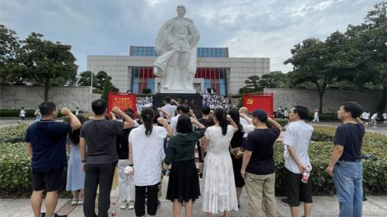 7月3日学院组织党员赴弋阳方志敏纪念馆开展党日活动,期间在方志敏塑像前举行了重温入党誓词活动,为本次党日活动奠定了庄严肃穆的基调。