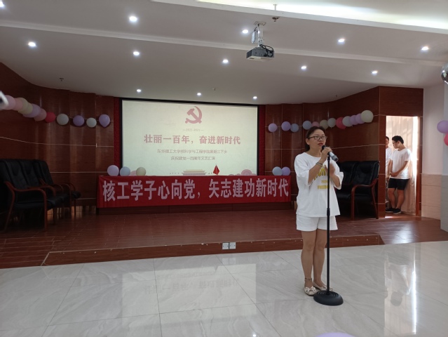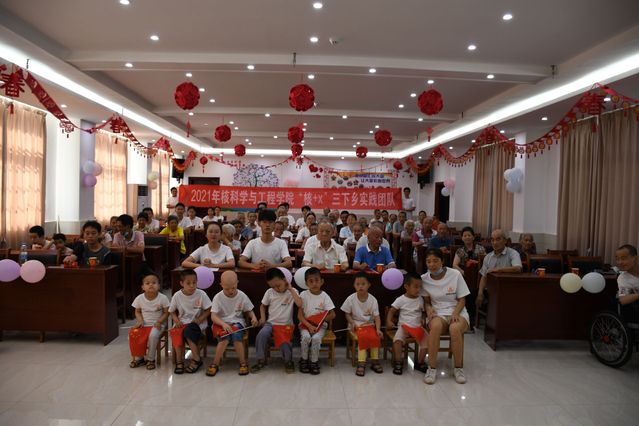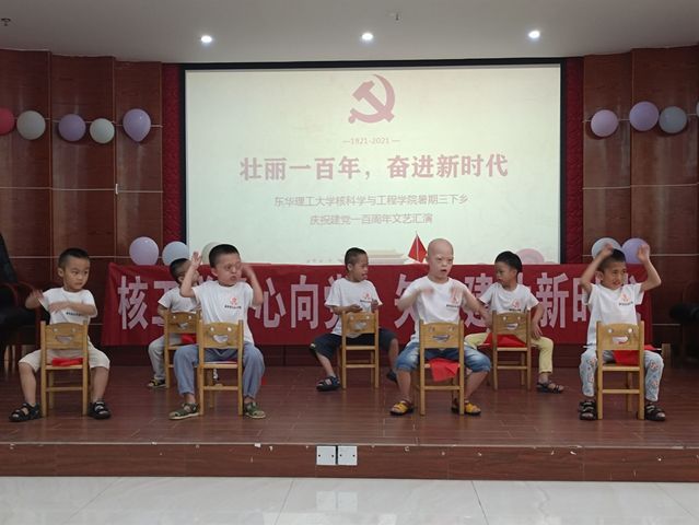 为庆祝中国共产党成立100周年,展现社会实践活动成果,7月9日,核科学与工程学院暑期“三下乡”实践团队在泰和社会福利院老年大学举行了“百年礼赞,绽放风采”庆祝建党100周年文艺汇演暨实践成果汇报演出活动。泰和县福利院副院长曾素蓉、护理办主任熊红兰、老人部部长肖春兰、实践团队指导老师欧阳威、儿童助教肖燕群、福利院全体老人、部分特殊儿童与社工,以及实践团队全体成员参与了本次文艺汇演活动。活动由实践队周迅同学主持。