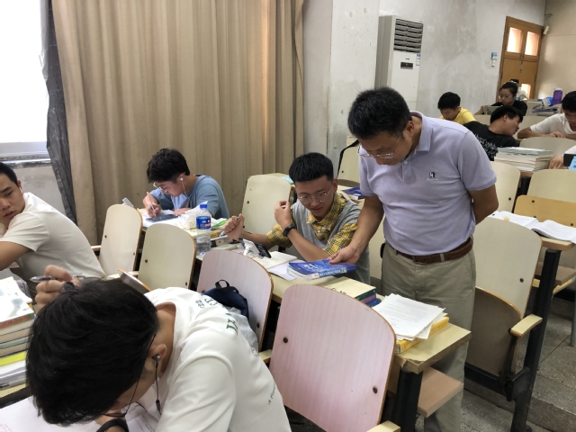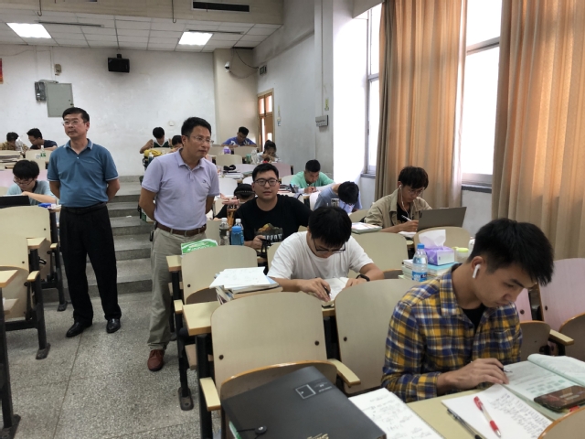 8月3日,师范学院院长颜七笙、副院长陈火弟、刘文辉等一行深入学院考研自习室,走访慰问暑期留校备战考研的学生。