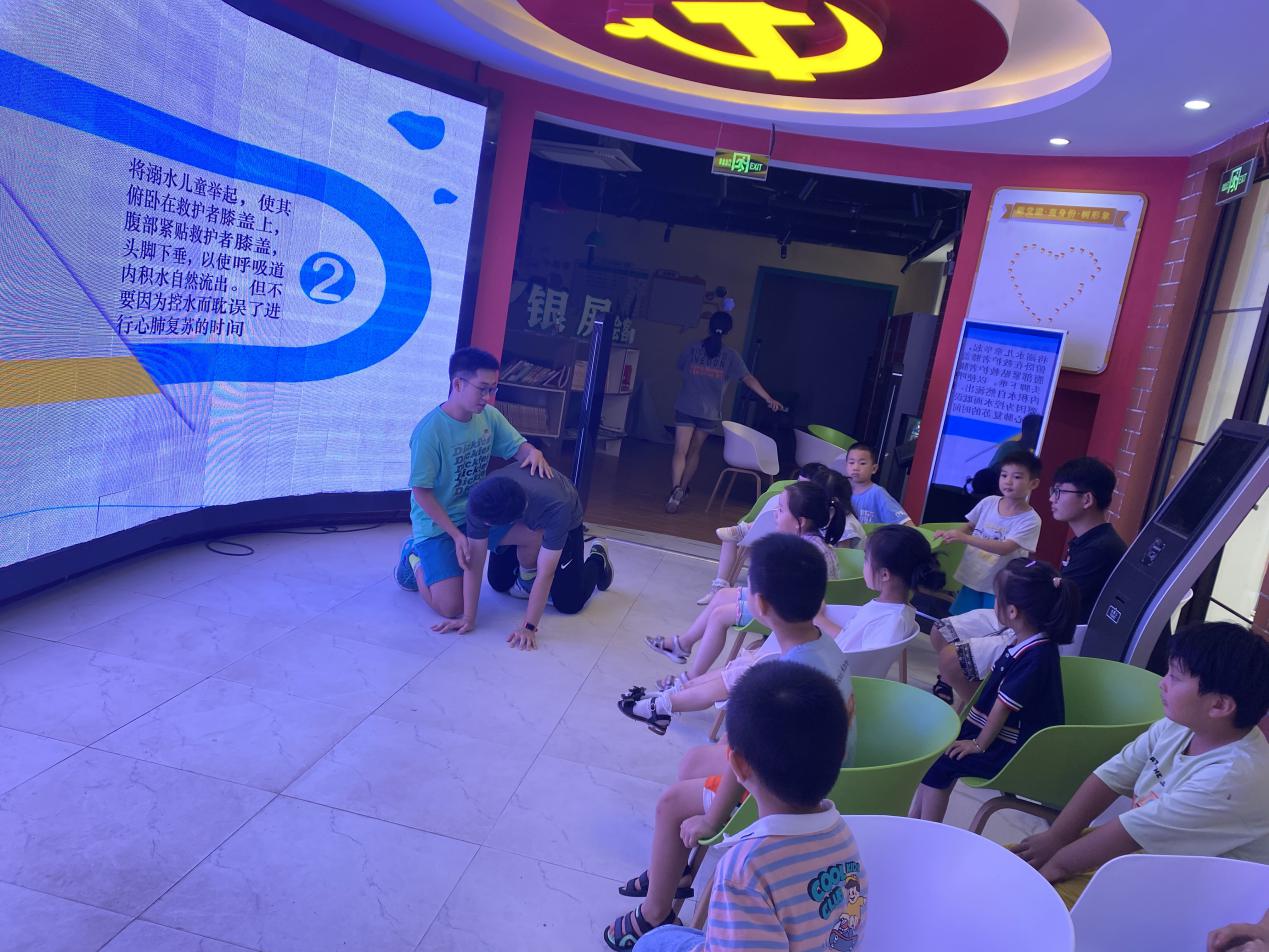 活动上,志愿者通过PPT讲座方式,结合典型案例,向孩子们宣传防溺水知识,提醒孩子们如何预防溺水、溺水时的自救方法、发现有人溺水时的救护方法等,提高自我防范能力,增强安全意识,并告诫孩子们不要在无家长的带领下私自下水游泳,不到无安全设施、无救护人员的水域游泳,不擅自与同学结伴游泳。最后,志愿者们给孩子们总结了防溺水的四“牢记”和六“不要”,并编成儿歌以加强孩子们的记忆。此外,志愿者充分结合建党100周年和党史学习教育,精心安排了党史故事小课堂。为了让孩子能听得明白,志愿者找了很多相关视频,并制作了 PPT,让孩子们从认识中国共产党党徽、党旗以及七一建党节的由来开始,再以讲故事的方式,声情并茂地给孩子们介绍了“狼牙山五壮士”和“小萝卜头”的红色故事,在孩子们的心中播下红色的种子。
