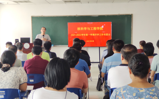 会上,刘义保首先就学院“十四五”发展方向、目标和任务做了重点说明。他指出,值此“十四五”开局之年,恰逢新学期伊始,学校核科学技术博士点申报通过评审,这是学院学科建设新的起点,全院教师以博士点建设为契机,凝练学科方向,加强团队建设,科学谋划核学科专业建设,提高人才培养质量和科研创新能力,进一步扩大学科竞争力和影响力。随后,副院长张怀强、李小燕分别就新学期教学、科研工作做了具体布置, 提出了明确的工作目标。 院党委副书记刘顺祥对学院2021年迎新工作、新生入学教育进行了布置安排。