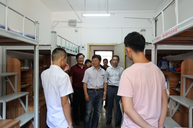 走访宿舍过程中,聂逢君与同学们亲切交谈,亲切询问同学们来校后适应的情况,并对同学们提出了殷切期望,希望大家能尽快转变角色,熟悉校园环境,珍惜学习机会,树立远大志向,以奋发自信的状态迎接大学阶段的学习与生活。走访宿舍期间,聂逢君还为贫困学生送去“爱心礼包”。