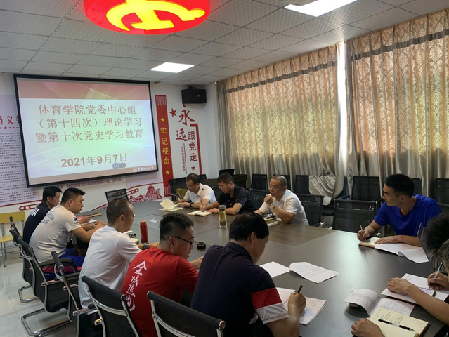 9月7日下午,体育学院党委在体育馆一楼党员活动室召开党史学习教育第10次专题学习暨党委理论学习中心组第14次学习会(扩大)。学院党委书记张明主持会议,院党委委员、支部书记、科级干部参加学习。