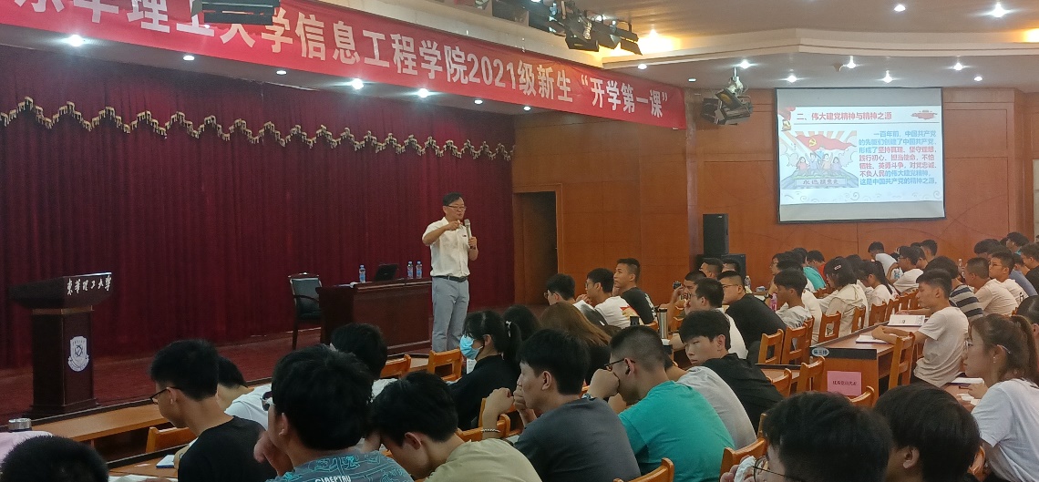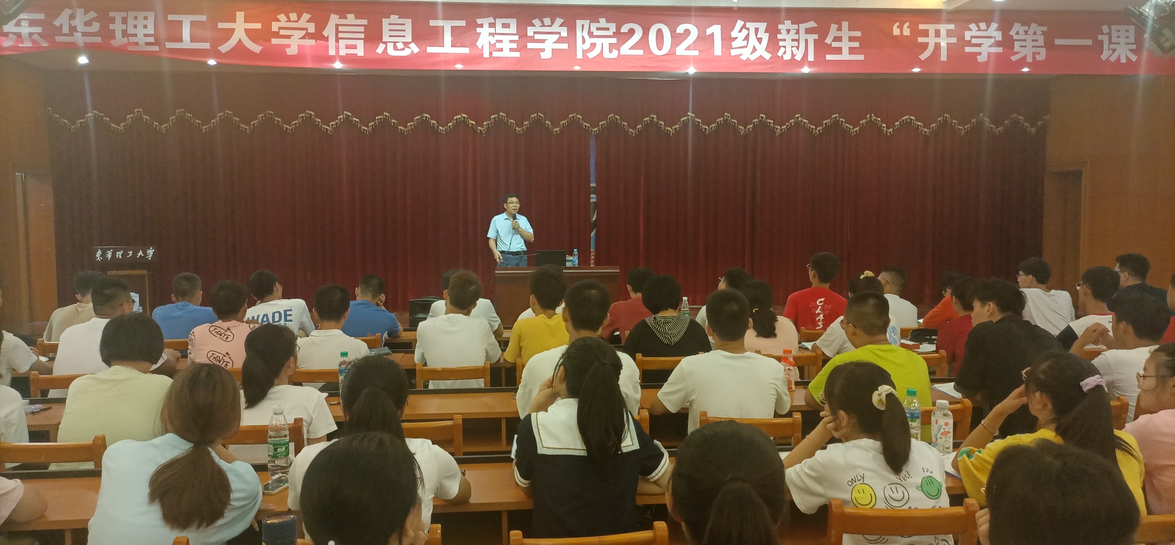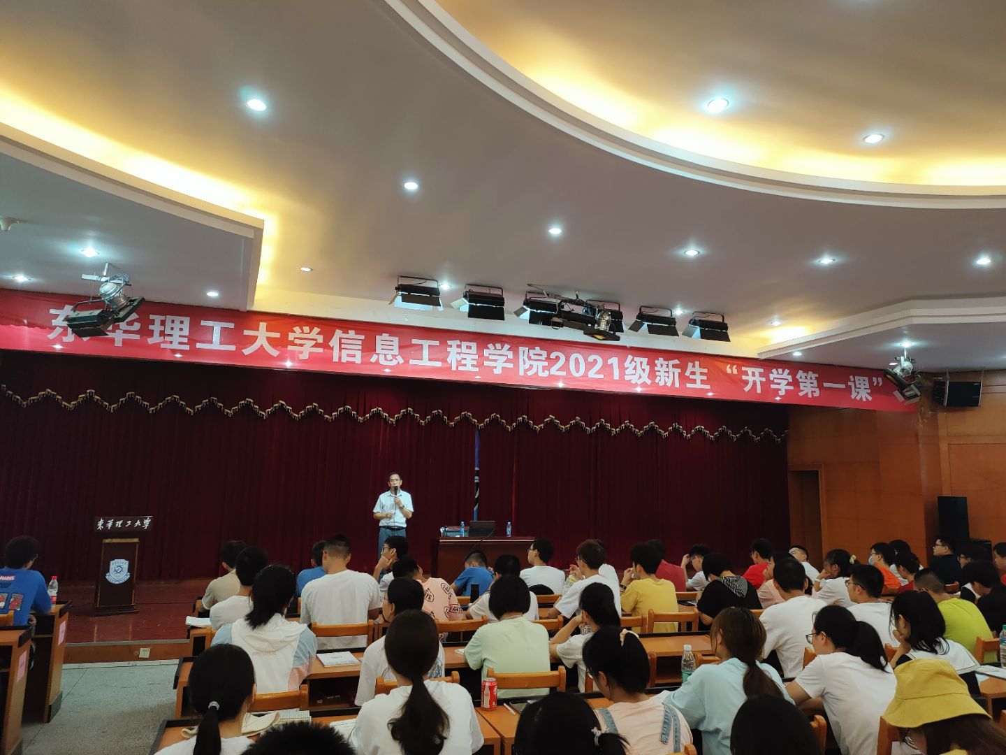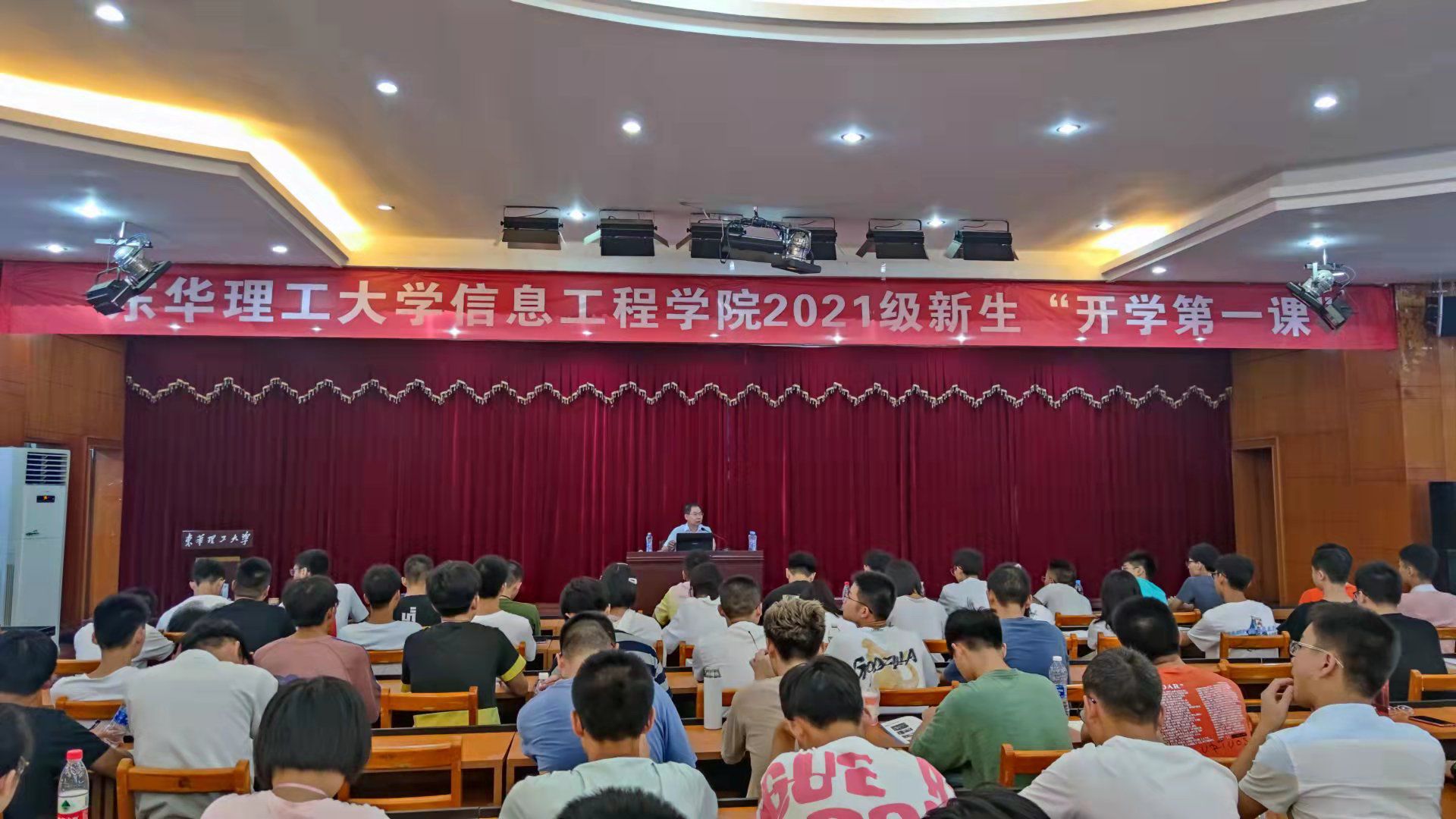 为加强我院新生思想政治教育,了解学校基本情况和相关管理规定,尽快转变角色,适应大学生活,信息工程学院于9月9日和9月10日在软件楼四楼报告厅开展2021级新生“开学第一课”,2021级全体新生在辅导员的组织下参加了听课。