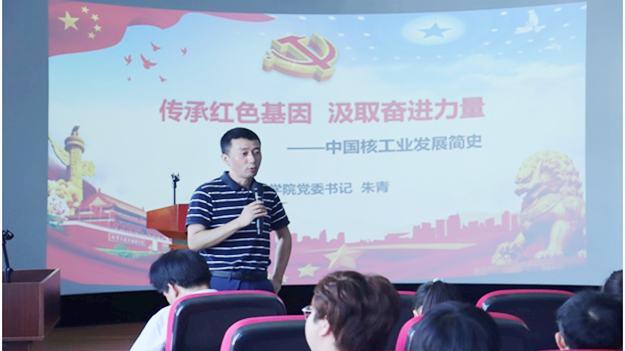 朱青以“传承红色基因,汲取奋进力量”为主题,为新生介绍了“两弹一星”精神、核工业精神和“敦本务实、崇义奉公”的校训内涵,讲述了我校宋金如、周义朋、李荣同等先进典型的感人故事,号召莘莘学子学史明理、学史增信、学史崇德、学史力行,传承红色基因,汲取奋进力量,争做有为青年。