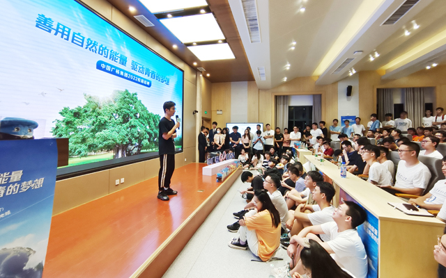 晚上,中广核集团招聘组在学校四号教学楼阶十九报告厅举办了校园专场招聘宣讲会。宣讲会火爆全场、盛况空前。宣讲现场,中广核集团招聘组为参加2021年聚核体验营并表现优异的6名核工学生颁发直通卡,他们将无需参加笔试、面试就可以入职中广核集团。其中,2018级核工程与核技术专业学生胡政豪和王志颖在会上分享了在聚核体验营的学习、实践经历和心得体会。招聘组对集团的基本概况、发展前景、企业文化和人才需求等进行了宣讲。在最后的互动交流环节中,针对同学们提出的问题与疑惑,林波及中广核招聘组成员作出详细解答。