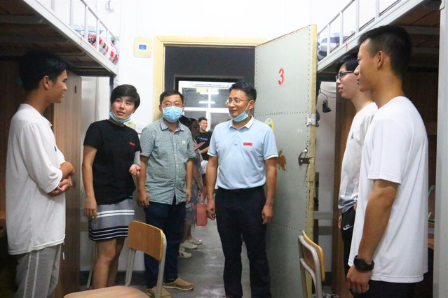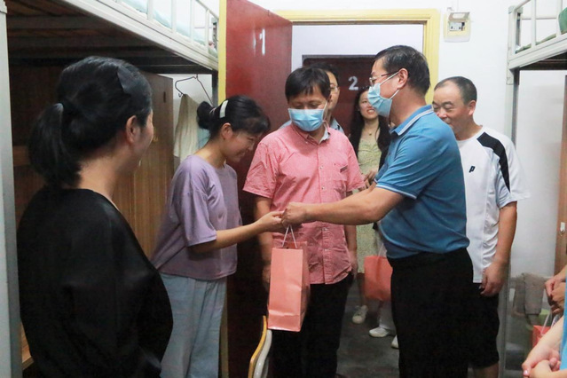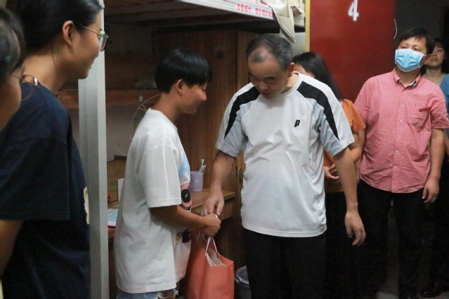 学院党政领导、各系主任、新生班主任及学团办老师走访新生宿舍。走访期间,领导老师们关怀之情溢于言表,询问新生是否住得习惯,叮嘱新生们注意人身财产安全,切实解决学生的问题。同时,为了表达对贫困学生的关爱,学院为贫困生发放了学工处准备的“爱心大礼包”。