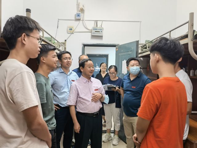 为深入了解2021新生入学适应情况,及时解决他们在生活上遇到的困难,让新生更快适应新的学习生活环境,9月7日晚,许德如院长和金建华书记组织新生辅导员和班主任深入2021级新生宿舍,看望新同学。走访中,学院领导对新同学们的到来表示欢迎,亲切询问新同学进校后的感受、饮食习惯、兴趣爱好、环境适应情况及目前遇到的生活困难等,提醒同学们要增强安全防范意识,遇到困难及时告知辅导员以便尽快予以解决。同时,鼓励同学们要学会独立生活,营造健康和睦的同学关系;养成良好的学习、生活习惯,明确学习目标,不断提升、充实自己;加强体育锻炼,拥有健康体魄。希望同学们在校期间快乐生活、快乐学习,珍惜学习时光、珍惜同窗之谊,嘱咐同学们在大学岁月里不负美好生活,在青春岁月不留遗憾。同学们纷纷表示将不辜负学院领导、老师们的期望,勤奋学习、尽快适应大学生活,早日成长为对社会有用的人才。
