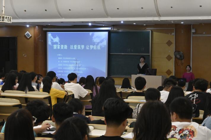 为引导学生安心学习,让新生知晓我校奖助贷补工作,加强家庭困难学生的理想信念教育、自立自强教育、诚实守信教育和感恩回报教育,学团办周露从政策入手,从申请条件到如何申请、从申请流程到注意事项等方面,系统讲解了资助体系,结合相关案例对资助意义做了强调,详细解答了同学们提出的疑问。
