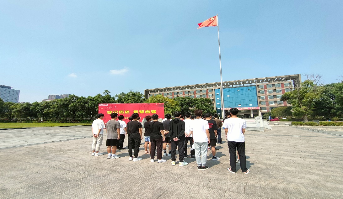 “曾几何时,我们的祖国饱经沧桑,历经磨难,让我们把历史的时针拨回到90年前的今天……”国旗下,2121701支部全员肃立,倾听团支书讲述这一段历史,铭记这深刻在每一个中华儿女心中永远耻辱的痛。