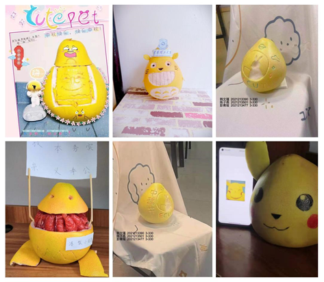 9月20日,学院一早就将精心挑选好的新鲜实惠的红心蜜柚发放到学生手里。不少收到柚子的同学们发挥想象,“秀”出柚雕绝技。“玉兔、龙猫、加菲猫、皮卡丘、QQ表情...”一个个“疯狂”的柚雕作品刷爆朋友圈。