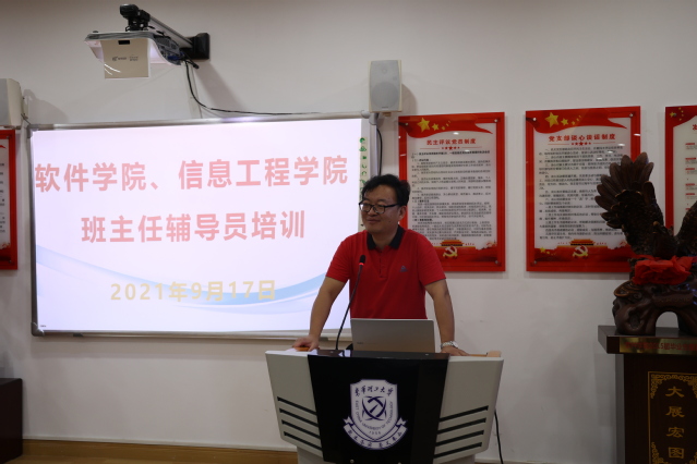 为落实“立德树人”根本任务,推进学校辅导员、班主任队伍建设,提升班主任和辅导员队伍的能力素养和工作水平。9月17日,信息工程学院、软件学院于软件楼316和抚州校区国防科技楼11楼会议室召开班主任、辅导员线下、线上培训会,学院全体班主任、辅导员和学生工作人员参加了培训,院党委书记许亚男、副院长李祥、学生工作处心理中心主任徐俊莎参加了培训开班启动仪式,培训会由院党委副书记许志文主持。