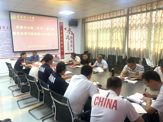 9月28日下午,体育学院党委在体育馆一楼党员活动室召开党史学习教育第12次专题学习暨党委理论学习中心组第16次学习会(扩大)。学院党委书记张明主持会议,院党委委员、支部书记、科级干部参加学习。