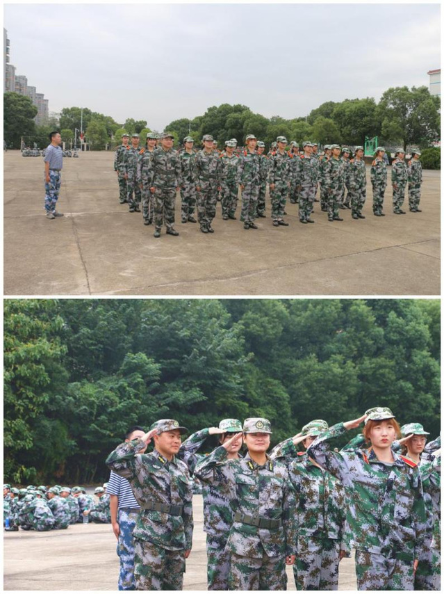最后,21级新生辅导员易松、闻忠旗与新生一起体验军事训练,并提醒学生要服从指挥、遵守纪律。