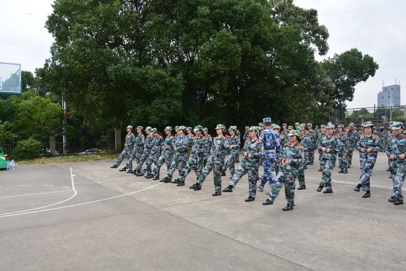 军训场地上,教官们正在训练新生的队列及正步姿势。在教官的口令下,同学们整齐划一地踏出铿锵的步伐。他们神情严肃,精益求精地钻研着每一个动作。一声声响亮的口号中,彰显着他们信心满满的斗志,展现着他们饱满的青春姿态。